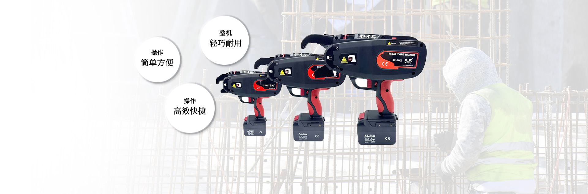 寧海三元電動(dòng)工具有限公司創(chuàng)建于2003年,地處寧波寧海躍龍街道雪坡開發(fā)區(qū)。公司主要產(chǎn)品有全自動(dòng)鋼筋捆扎機(jī)等一系列產(chǎn)品、繞線機(jī)、線盤配件等。14.4V的RT280S/RT450S/RT580S。屏幕顯示、電磁剎車18.5V5A的RT528/RT545/RT558。2023年推出新款:RT-441和RT-650速度更快0.6秒打一個(gè)結(jié)、用絲更短,僅需用1.0MM2根的10-35CM鐵絲,且綁扎的更牢固。